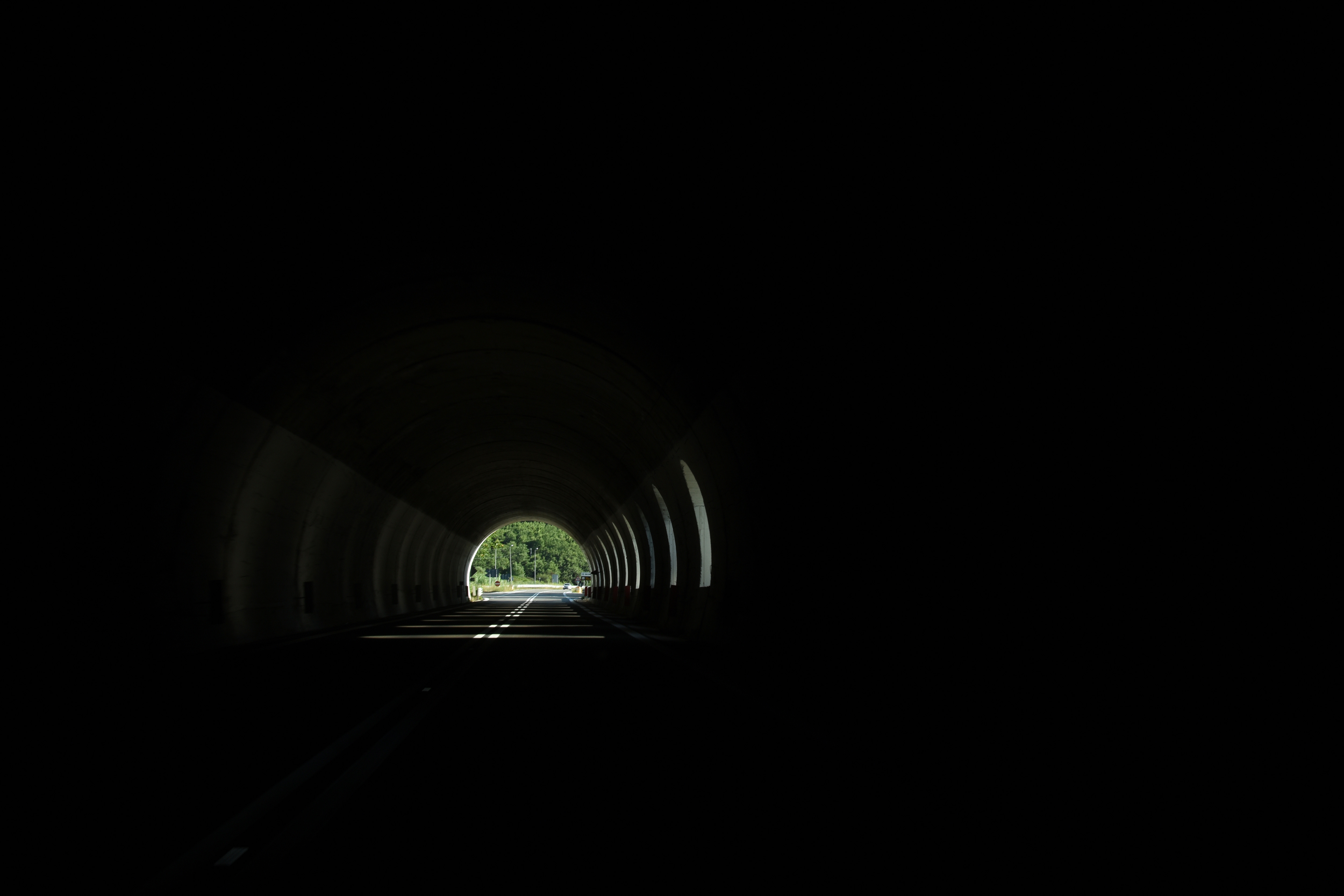 Trattasi della Strada Statale Sinnica. Ogni volta che la percorro, la mia fantasia mi porta ad immaginare un treno costeggiare la strada che rappresenta l'unica cosa moderna percepibile (la strada). In fondo al tunnel spicca il colore verde della natura circostante.