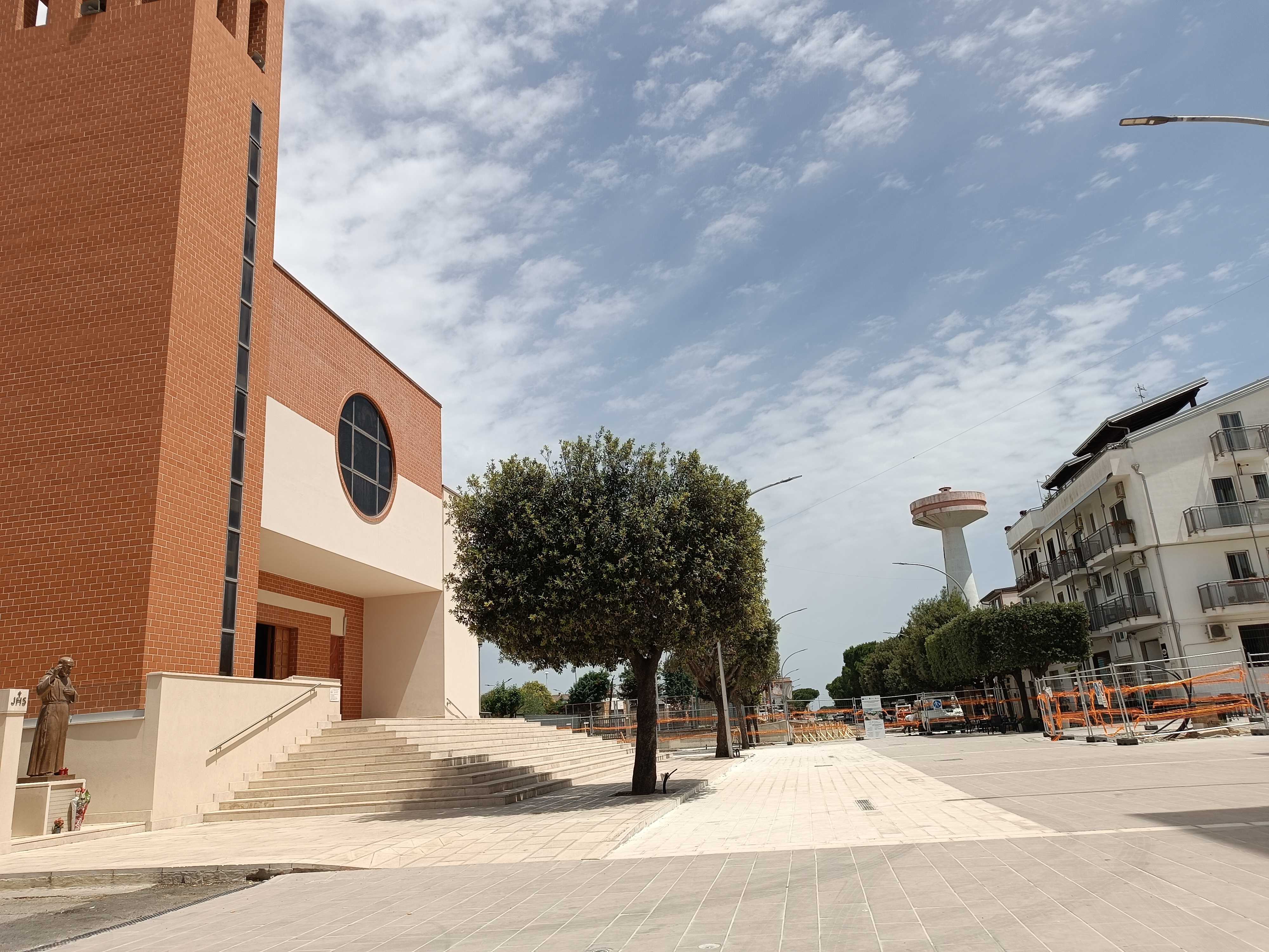 Nella fotografia è rappresentata la piazza di un paese della provincia di Matera. Racconta le tradizioni e il futuro che sta nascendo. In Piazza Elettra si nota un'architettura di epoca fascista, simboli del regime ed edifici tipici. La torre littoria e il portico che avvolge la piazza.