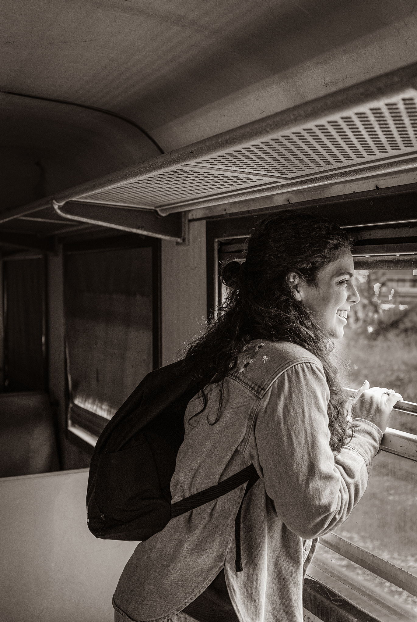 - Un treno d’altri tempi percorre vecchi binari, il suo finestrino è una porta aperta sul futuro. Una giovane guarda "oltre", come se ogni movimento del treno fosse un passo verso nuove possibilità. Il rumore delle rotaie, che sembrano raccontare storie di tempi passati, si fonde con il silenzio dei suoi sogni e delle sue speranze. Il mezzo di trasporto, simbolo di un’epoca che ha viaggiato attraverso decenni, si intreccia con l’entusiasmo di una giovane che guarda al domani con occhi pieni di aspettative. La littorina diventa così non solo un mezzo di trasporto, ma un ponte che collega il passato e il futuro, l’esperienza che arricchisce la speranza di chi, come lei, è pronta a partire verso nuove avventure.