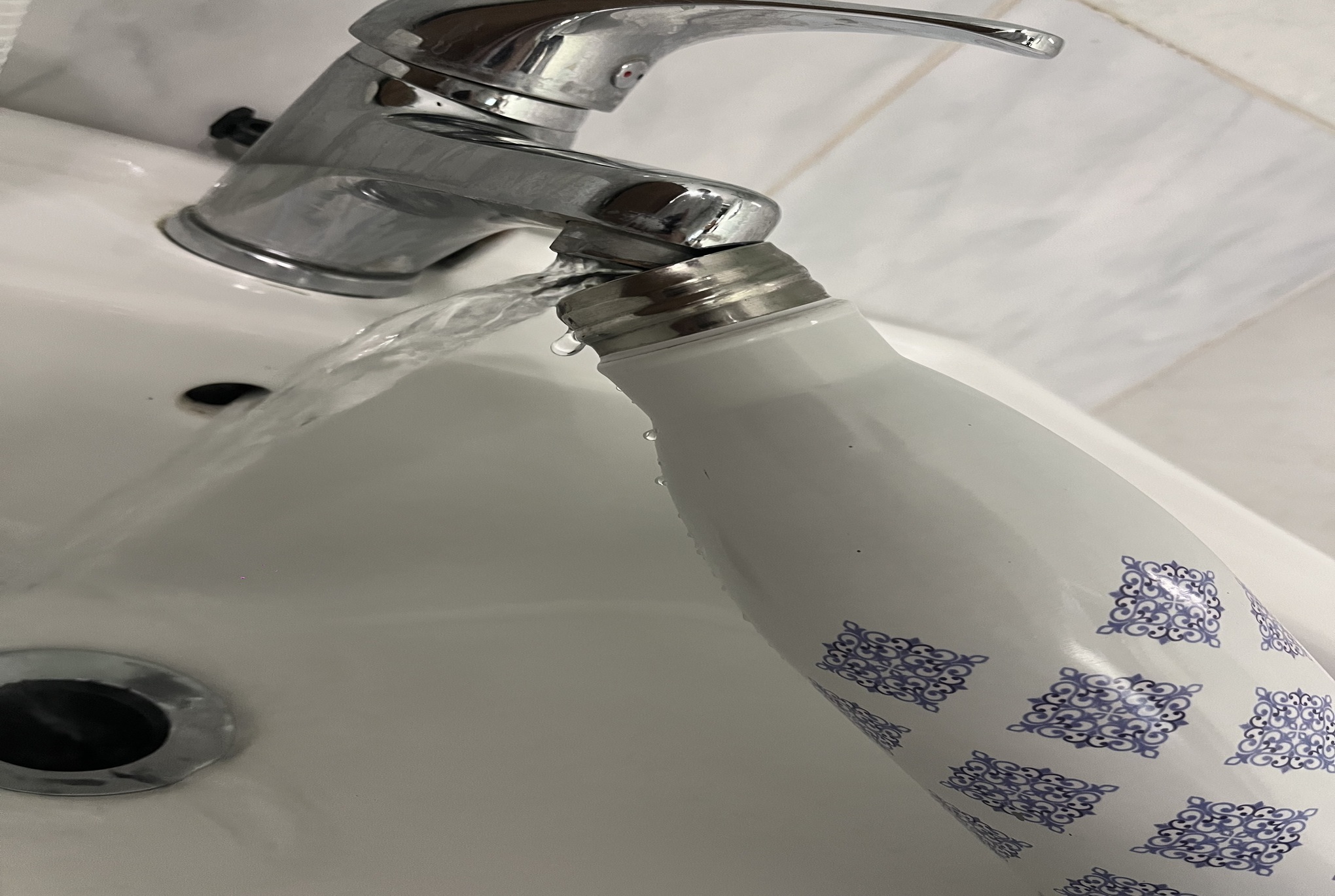 A questa foto possono essere attribuiti più significati su diversi temi, quali lo spreco d'acqua, la lotta contro l'inquinamento da materiali plastici e l'economicità nell'utilizzo dell'acqua del rubinetto.